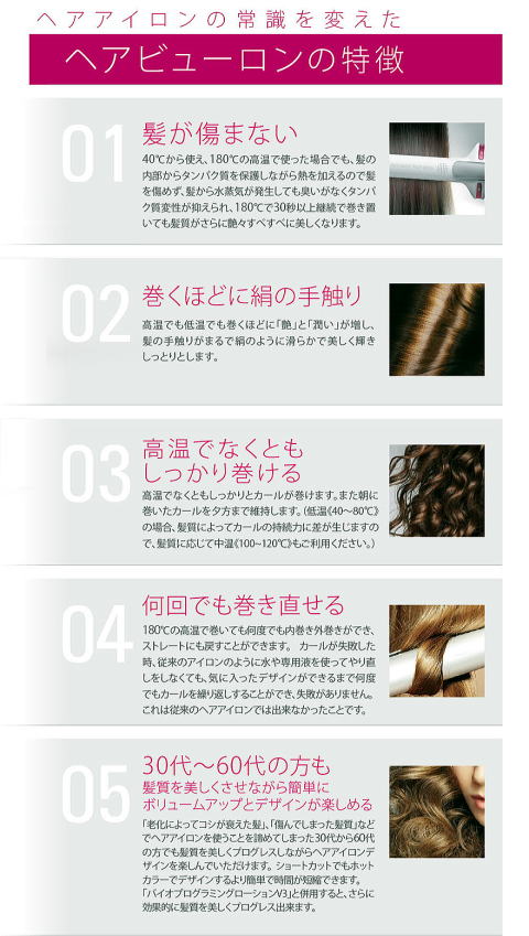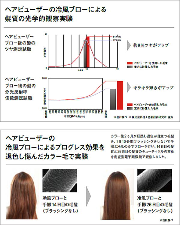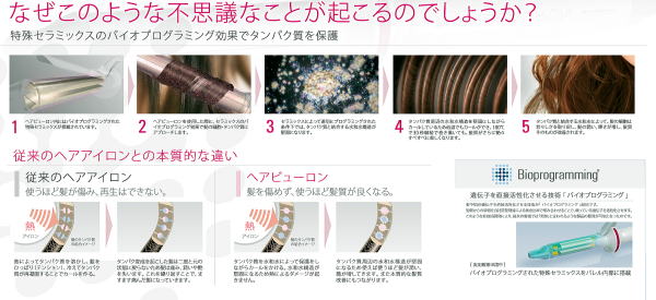 Page Top▲ ![]() ![]() タンパク質を活性化させて髪も肌も潤うドライヤー『ヘアビューザー』を導入しました。(^^)/ 「タンパク質を活性化?髪も肌も潤うドライヤー?そんな胡散臭い物あるわけないじゃん。」 と言いたくなりますよね。 実は、自分も思っていました。 ディーラーさんから何度もこのドライヤーを紹介されたのですが、「そんなものあるわけないじゃん。」と思いながら 導入を先送りにしていました。 価格も高いですし、いままでの常識から考えてもありえないですからね。 いままでの常識では、髪を潤すのは、外部から与えないとできないと考えられていましたし、ドライヤーは、髪を 乾燥させる物と考えらていました。 その常識のまったく逆の事ができるというから、そりゃ信じられなくて当然ですよね。 人間、いままで生きてきて得た経験や知識から物事を判断しますからね。 では、なぜ、私が導入を決めたかというと、知り合いの美容師がすでに使っていて絶賛していたので、同業者が 嘘を言わないと思い導入を決意しました。 で、使ってみた結果は? 明石家さんまさん風に言うと 「タンパク質を活性化?髪も肌も潤うドライヤー?そんなことあるわけないがな〜 ・・・・」 「ホンマや!」 とつい言ってしまいたくなるぐらい実感できます。\(◎o◎)/! では、そのヘアビューザーについてくわしく説明していきたいと思います。(^^)/ ![]() ![]() なぜ、このような不思議な事が起こるのか? それは、熱にたよる従来の美容アプローチではなく複雑にプログラミングされたセラミックスが発する情報が直接、 細胞(分子)を活性化している からです。 その分子や遺伝子を直接活性化させる技術を「バイオプログラミング(R)」といいます。 ![]() バイオプログラミングとは、髪や肌の分子や遺伝子を直接活性化する技術が「バイオプログラミング」技術 です。 物質からの情報をLUMIELINAの開発理論による黄金比率で組み合わせることで、分子や眠っている遺伝 子を活性化させます。 このような新技術開発により、従来の常識では「奇跡」と言われるような製品の開発が可能となったのです。 髪や肌で一体、何が起きているのか? 髪や肌の分子や遺伝子を直接活性化する技術が、LUMIELINAが開発した「バイオプログラミング(R)」技術 です。 これにより「冷風で髪がうるおう」「髪質が変わる」「肌に冷風を当てるとキメ・うるおいが増す」という常識では 考えられないような革命的な美容アプローチが実現したのです。 1.ヘアビューザーにはバイオプログラミングされた特殊セラミックスが搭載されています。 2.温風・冷風に限らず、バイオプログラミングされた特殊セラミックスから発する情報が タンパク質を取り囲む水分子へアプローチします。 ![]() 3.(使用前)外部ストレスや加齢によって、タンパク質を取り囲む水和水構造が壊れ、 タンパク質が形状変化を起こして髪の衰えとなって現れます。 ![]() 4.(使用後)適切にプログラミングされた条件下では、タンパク質と結合する水和水構造が 緻密になり、髪の細胞は若々しさを取り戻します。 ![]() 5.髪のうるおい、輝きが増し、髪質そのものが改善されます。また、バイオプログラミング効果は 肌のリフトアップ効果も期待できますが、皮膚へ当てる風は冷風のみで行ってください。 ※温風を肌に直接当てると、やけどなどを引き起こす場合がありますので、絶対におやめください。 いままでのマイナスイオンドライヤーや〇ナソニックのナノ〇アドライヤーなどは、空気中の水分を細かくして 髪の表面に付着させて手触りやうるおいを与えていましたが、シャンプーをしてしまうと付着した水分が取れて しまうため元の髪に戻ってしまいますがヘアビューザーは、髪内部のタンパク質を活性化させて水分と引っ付 きやすくなるため使えば使うほど髪の状態が良くなっていきます。 その事がわかりやすい動画がコチラ↓ ローカルテレビの情報番組でもヘアービューザーが紹介されました。↓ この番組内でも紹介されていますがこのヘアービューザーを顔に冷風を当てるとリフトアップ効果があるから 驚きです。 タンパク質を活性化させることで血流がよくなるそうです。 雑誌のSTORY、LEE、美ST、マリソル、エクラなど多数のメディアにもヘアービューザーが紹介されました。 ・・・といろいろ説明いたしましたが、なんだかよくわからないというのが本音じゃないですか? 自分が何度もディーラーさんから何度も説明されても購入を先送りしてたのですから当然です。 まずは、当店で体験して実感してみてください。 それから購入するか検討してみてください。 価格は、22500円(税別)と少しお高めですがその価値はあると思います。 購入の際は、注文になりますので一度、ご連絡ください。 *まがい物が出回っているみたいですのでご注意ください。 追伸 : これから何十年とパサつくドライヤーを使い続ける人生と毛先まで潤うドライヤーを使い続ける人生と どちらの人生